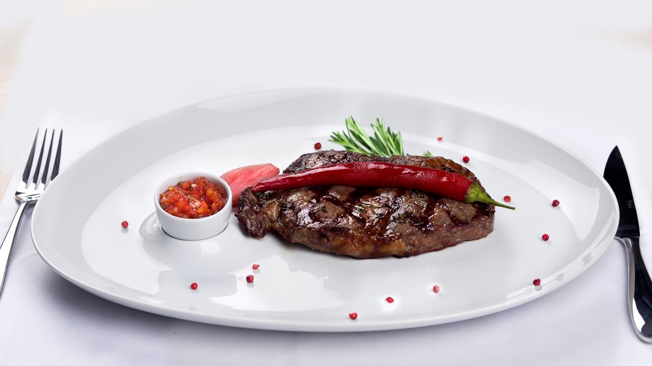 Wallpaper Blood steak on a plate with red pepper