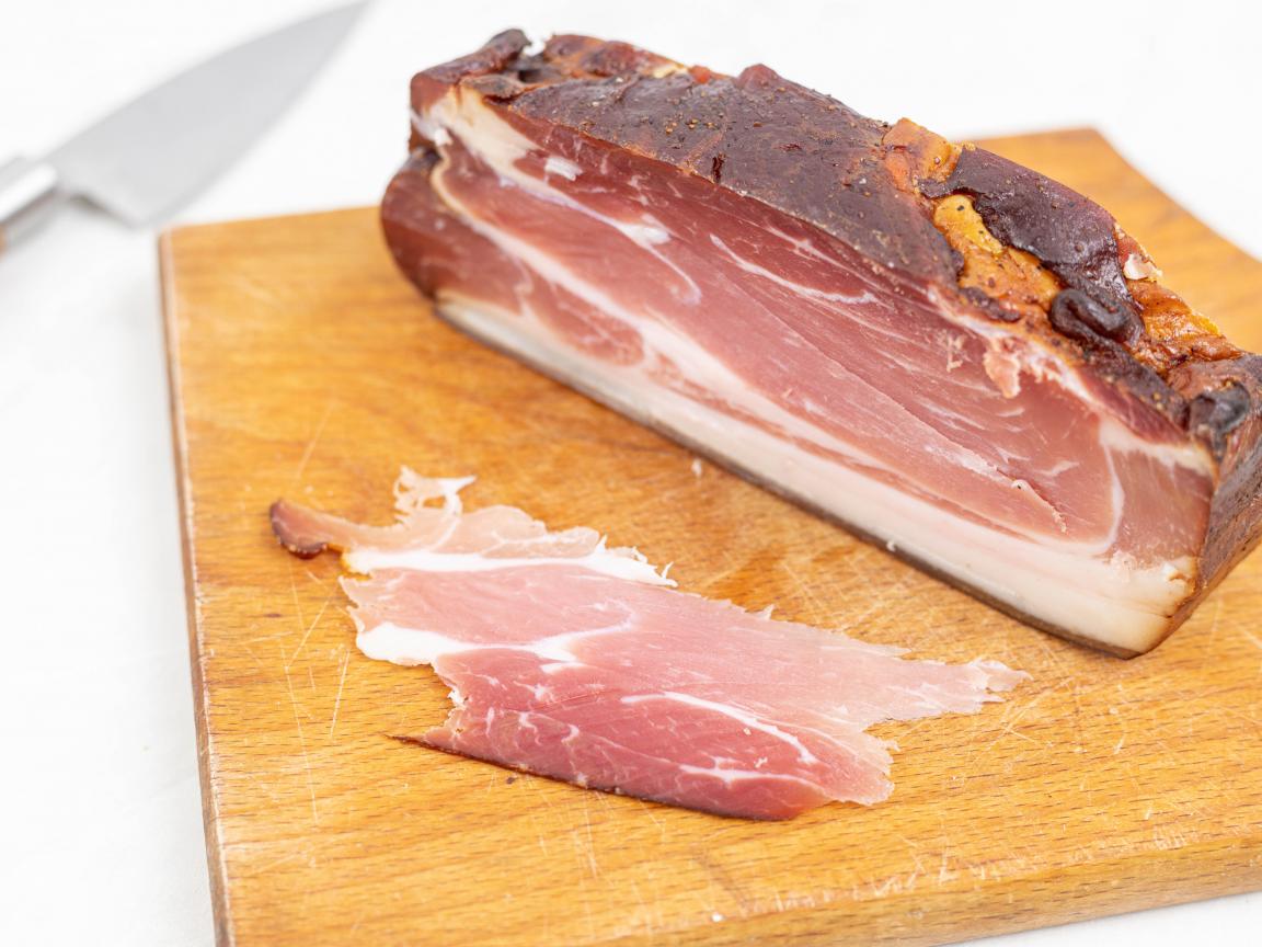 Wallpaper Appetizing piece of ham on a cutting board