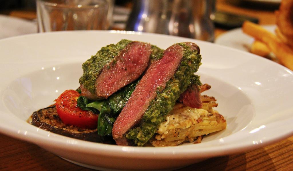 Wallpaper Appetizing steak on a plate with vegetables