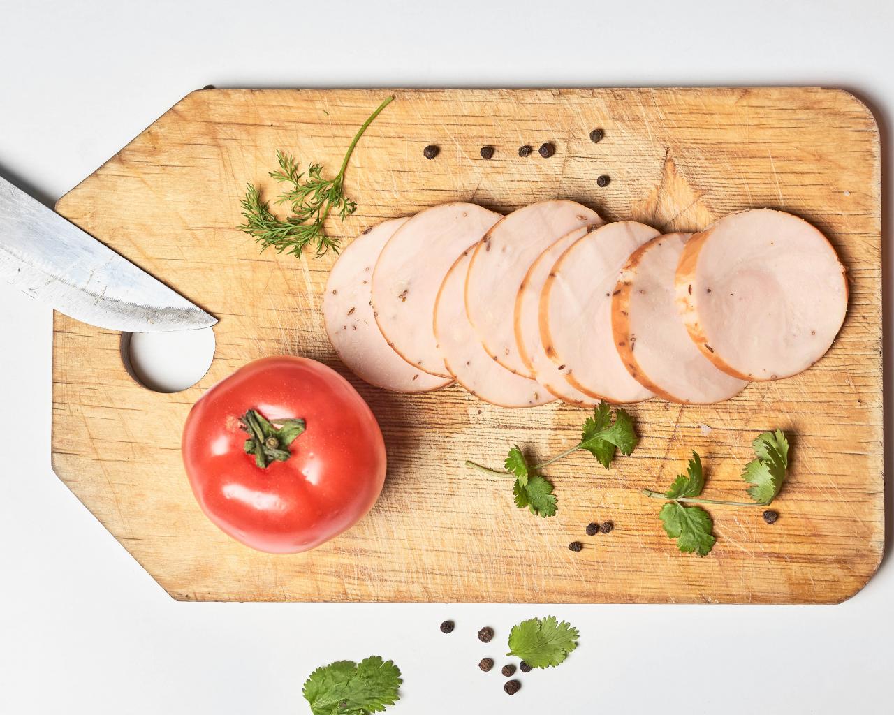 Wallpaper Ham on a cutting board with tomato