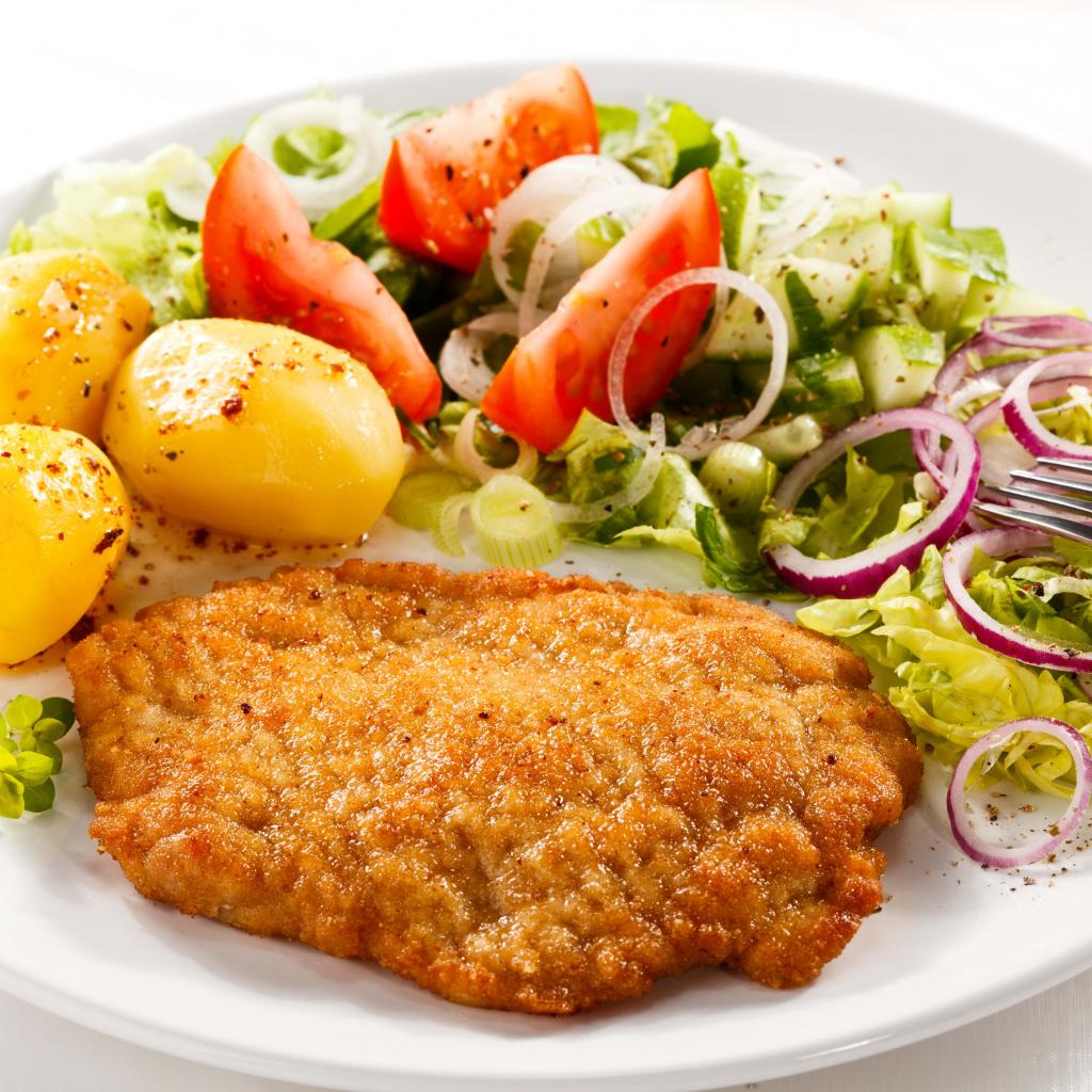 Wallpaper Chicken chop on a plate with potatoes and vegetables