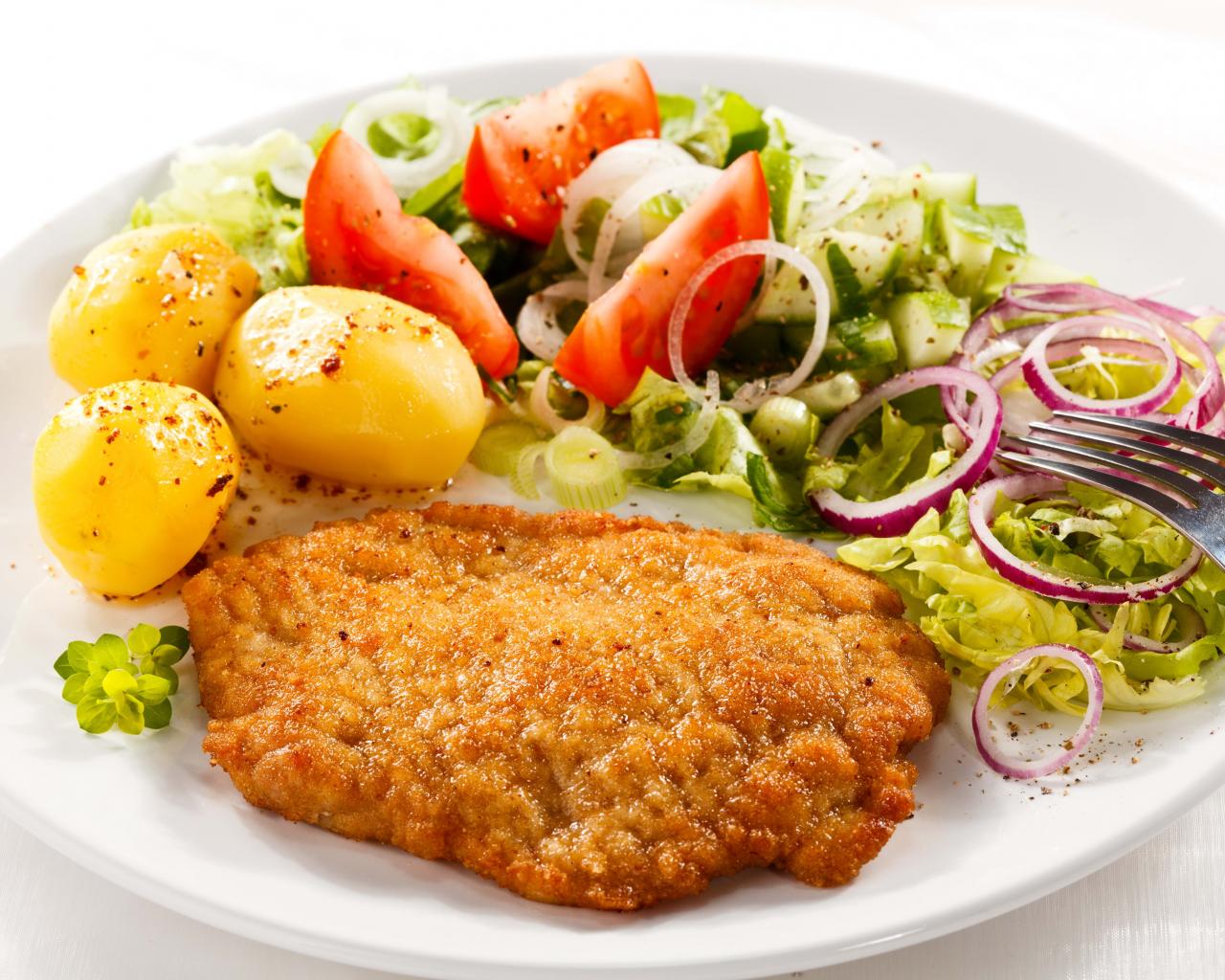Wallpaper Chicken chop on a plate with potatoes and vegetables