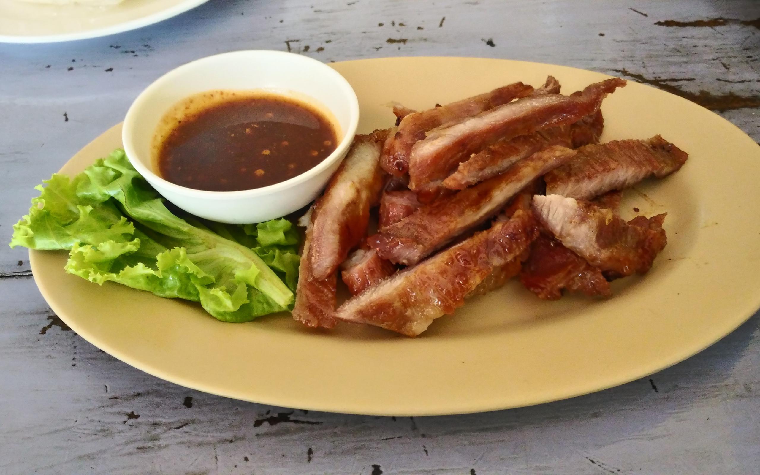 Wallpaper Pork ribs on a plate with sauce and lettuce