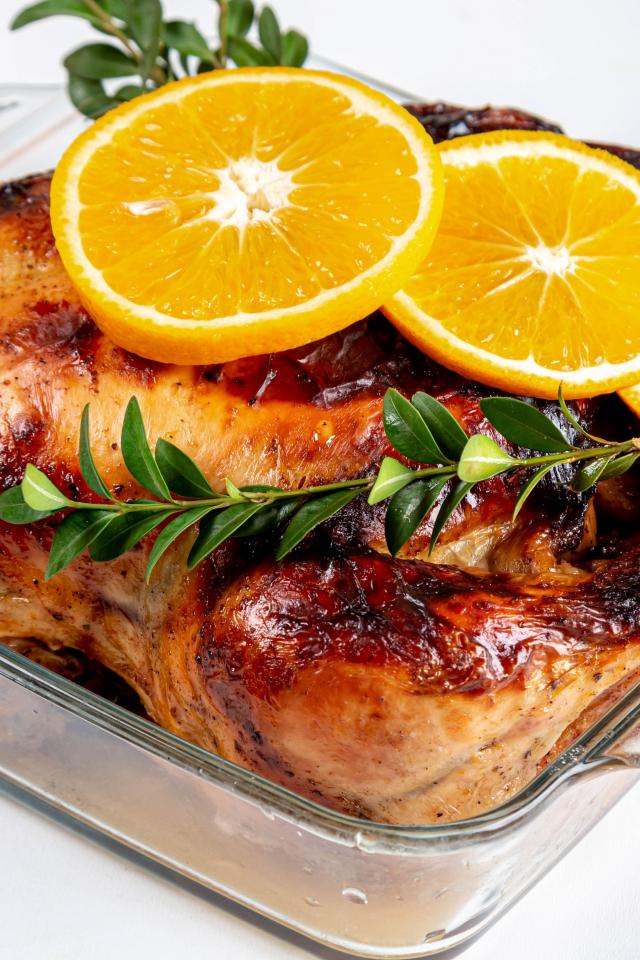 Wallpaper Baked chicken in a skillet with lemon
