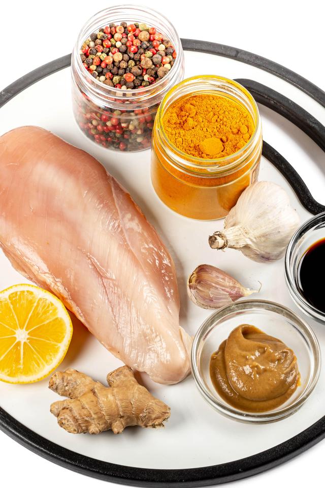 Wallpaper Chicken breast on a white plate with spices and sauce