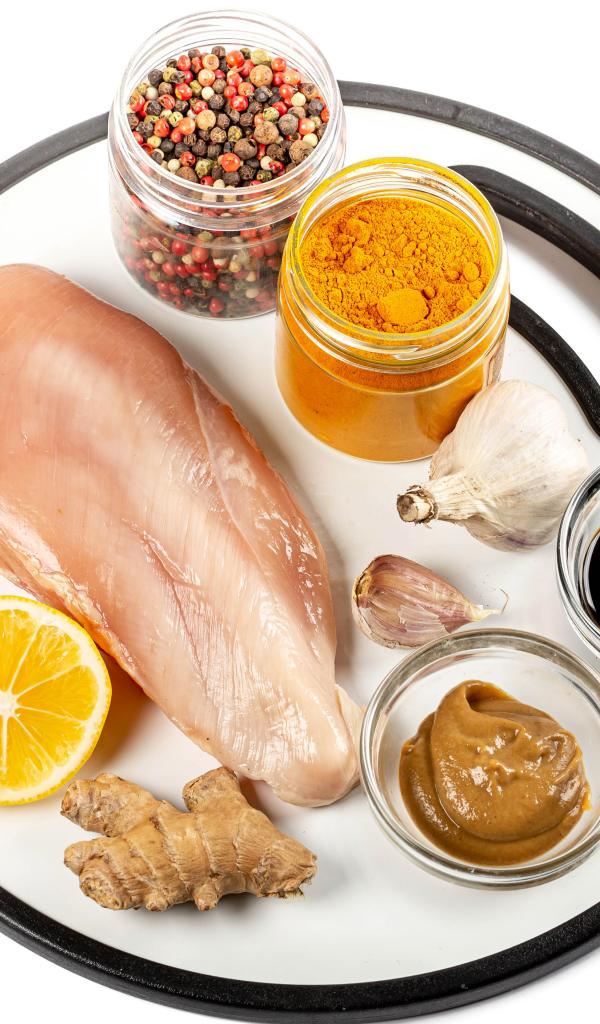 Wallpaper Chicken breast on a white plate with spices and sauce