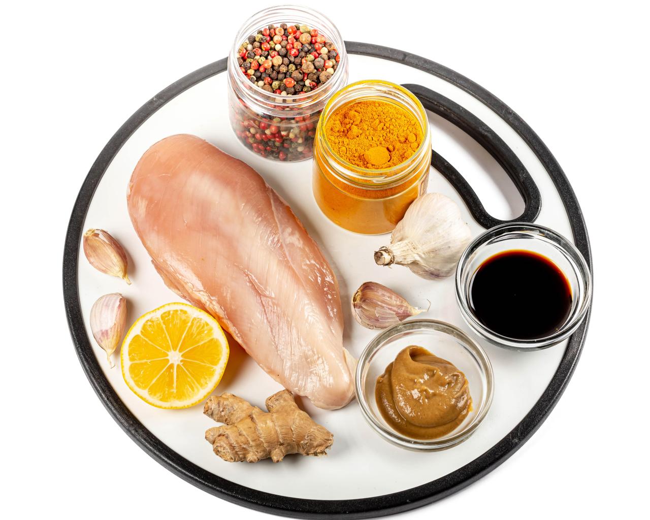 Wallpaper Chicken breast on a white plate with spices and sauce