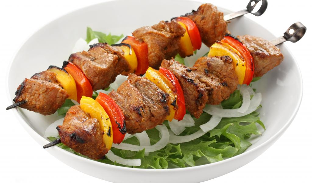 Wallpaper Shish kebab with bell pepper on a plate with lettuce