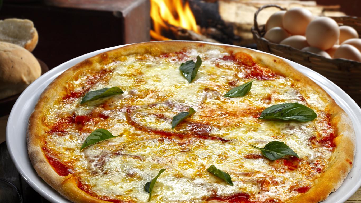 Wallpaper Pizza with tomato, pepper and herbs on a white background