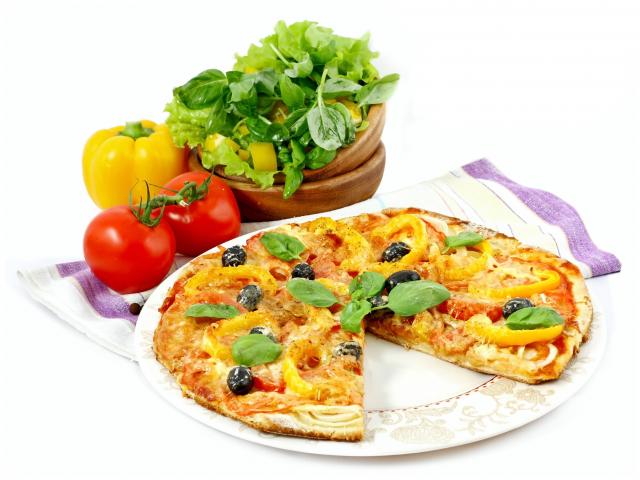 Wallpaper Delicious pizza with fresh tomatoes and pepper