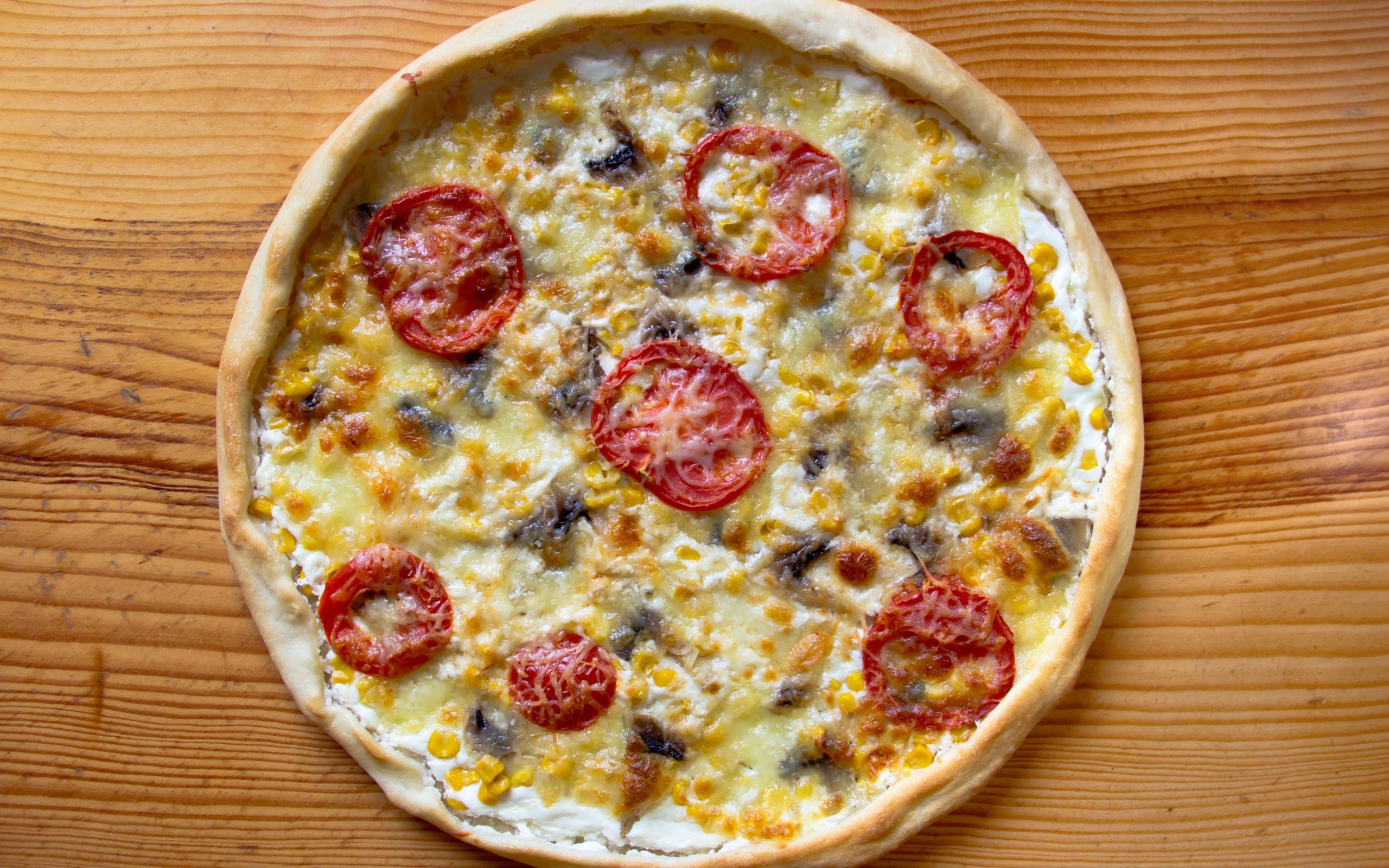 Wallpaper Italian pizza with tomatoes and cheese on the table