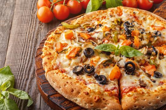Wallpaper Appetizing pizza with olives on the table