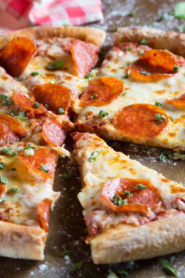 Wallpaper Appetizing pizza with slices of sausage and cheese