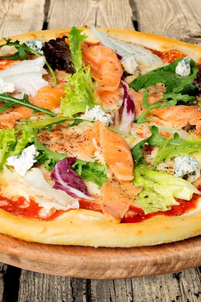 Wallpaper Appetizing pizza with fish and arugula