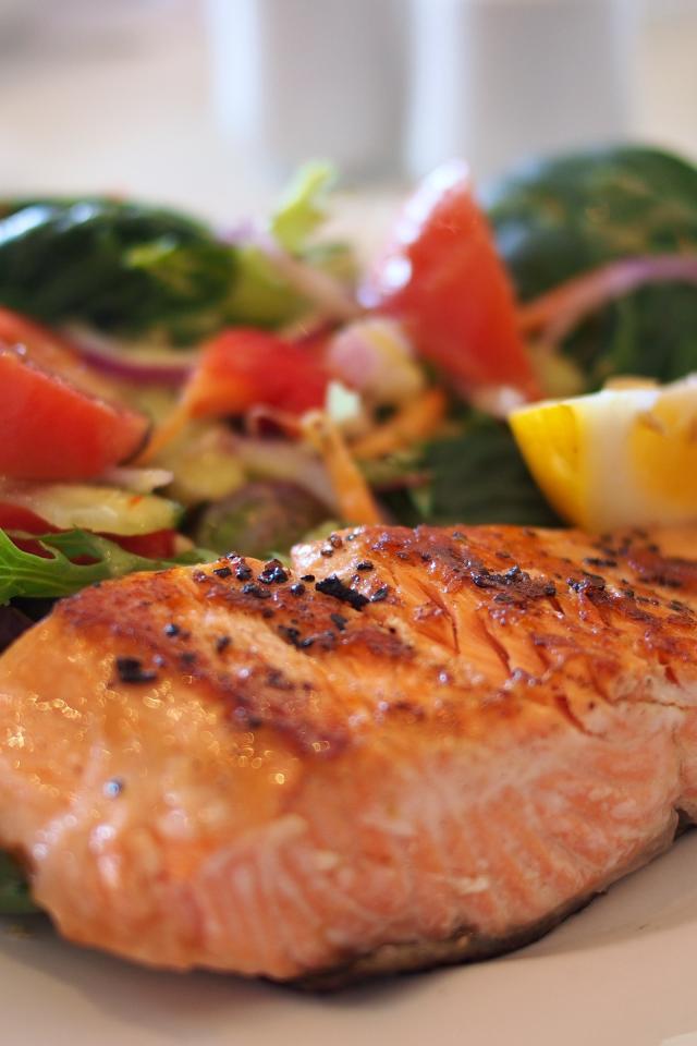 Wallpaper A piece of fried fish with vegetables on a white plate