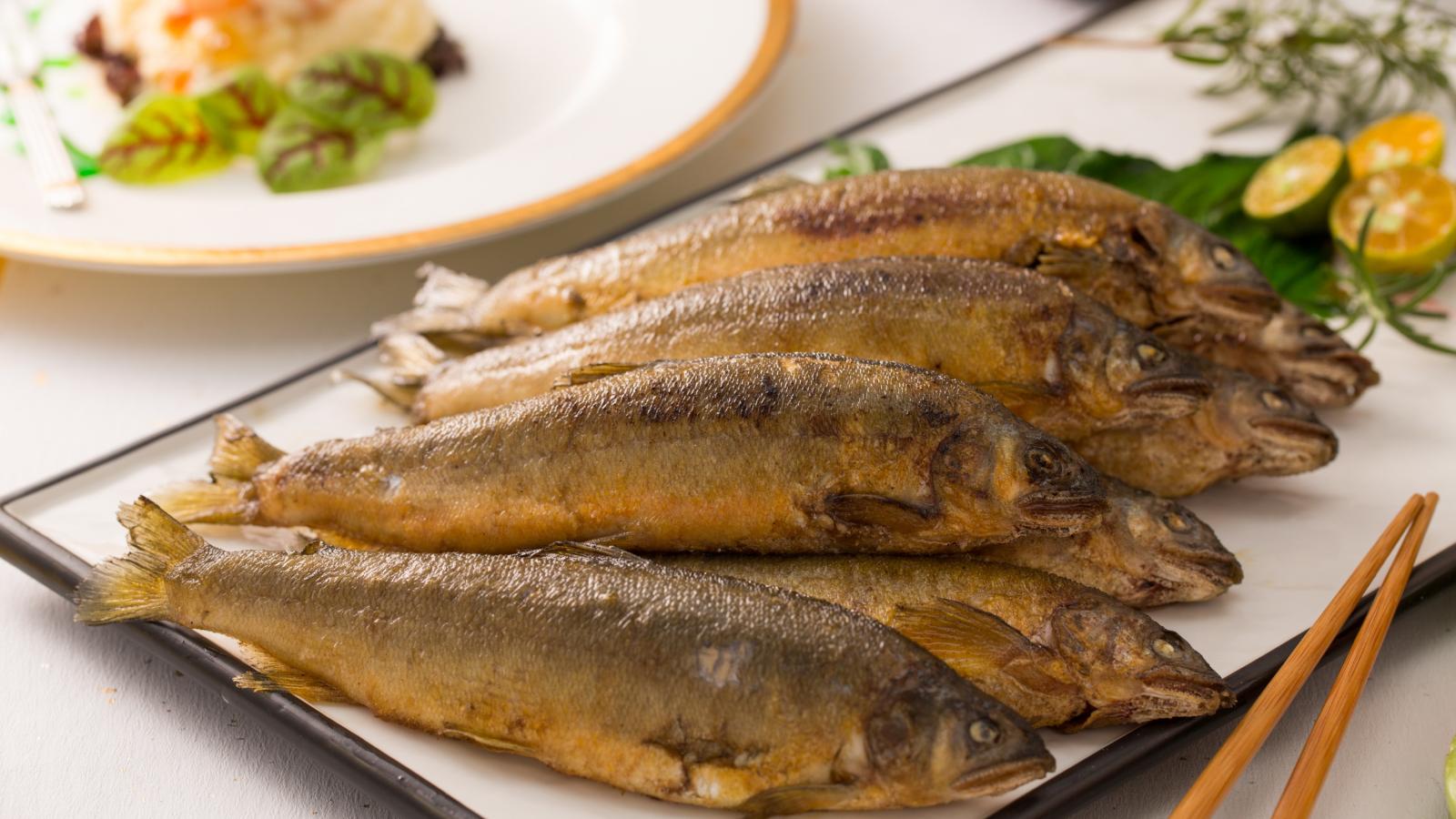 Wallpaper A piece of fried fish with vegetables on a white plate