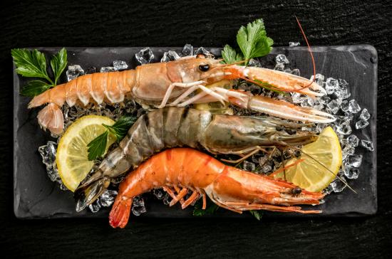 Wallpaper Large shrimps with slices of lemon
