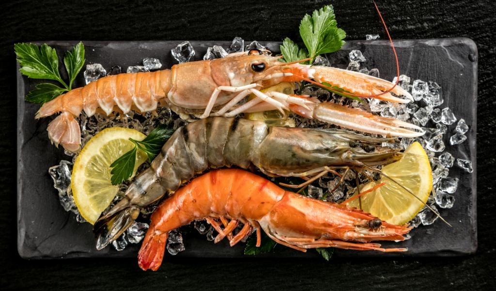 Wallpaper Large shrimps with slices of lemon
