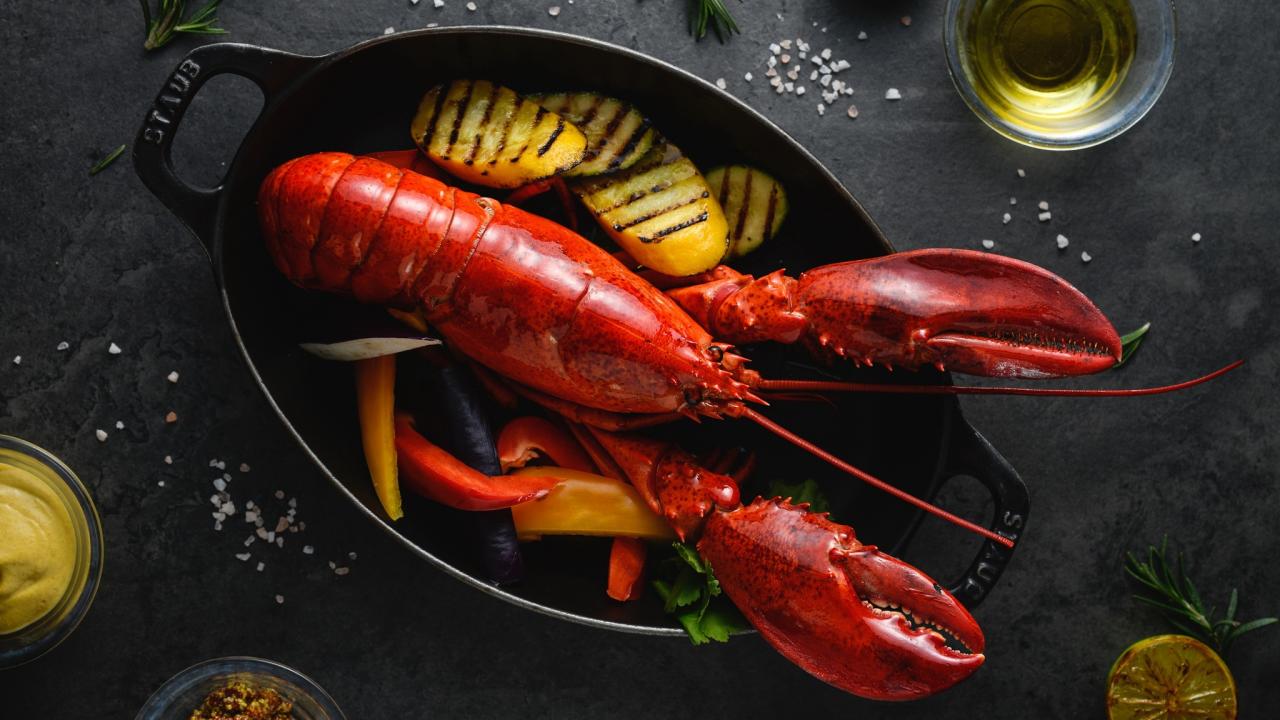 Wallpaper Large lobster with vegetables