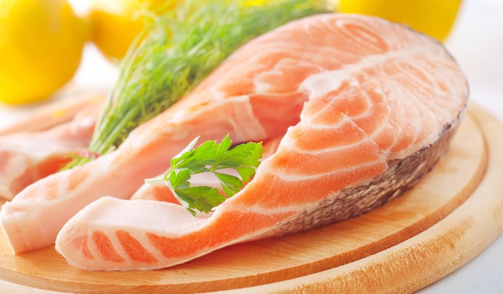 Wallpaper A piece of fresh red fish with parsley