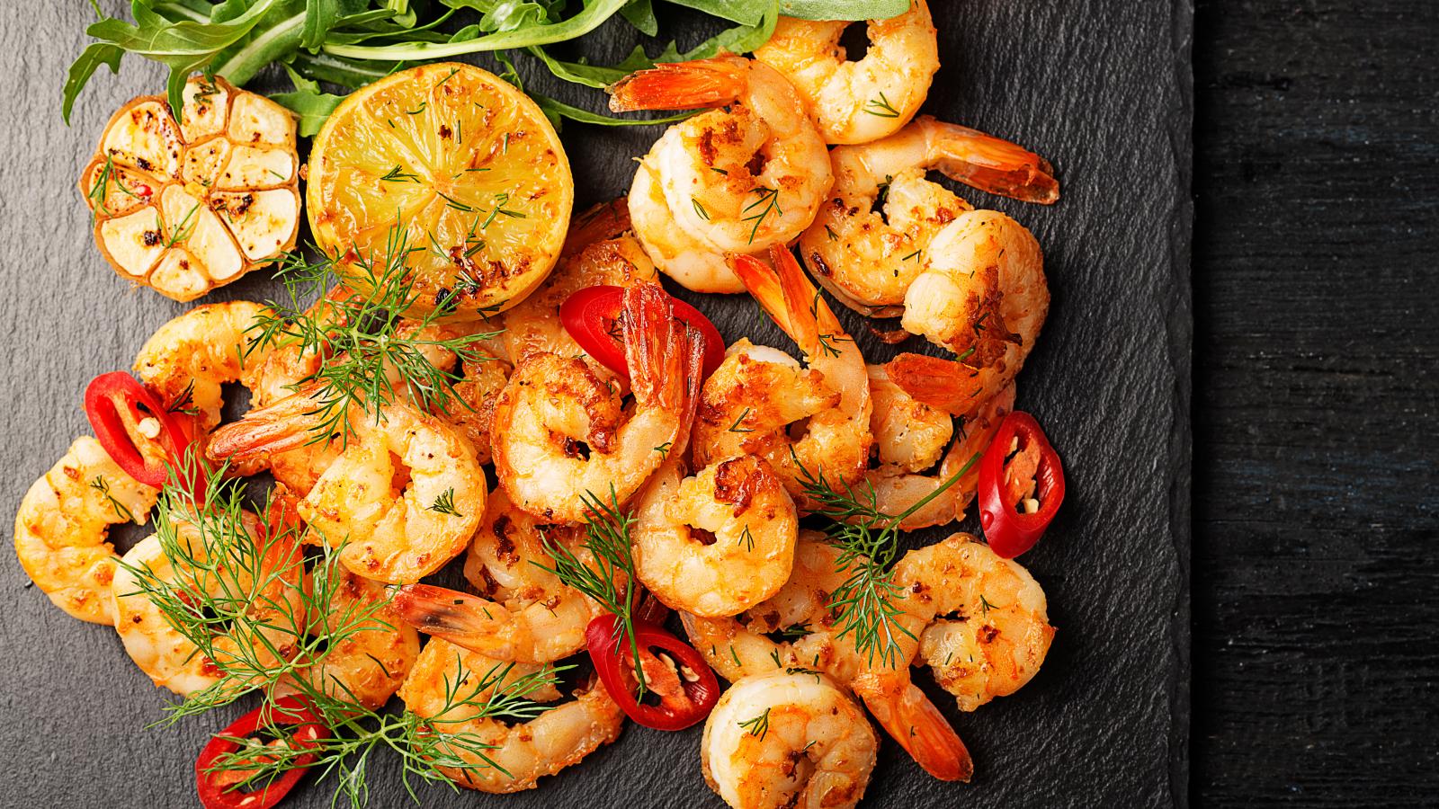 Wallpaper Grilled shrimps with garlic, lemon and red pepper