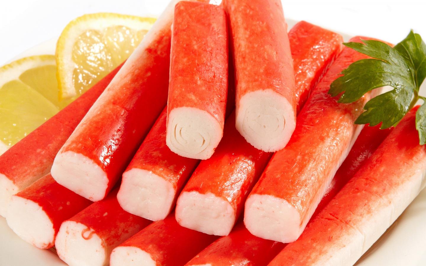 Wallpaper Crab sticks with lemon close up