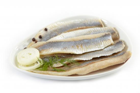 Wallpaper Herring fillet on white background with onions