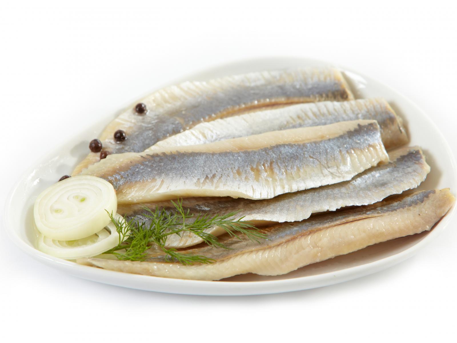 Wallpaper Herring fillet on white background with onions
