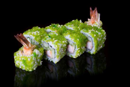 Wallpaper Sushi with caviar and shrimps on a black background