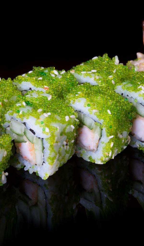 Wallpaper Sushi with caviar and shrimps on a black background