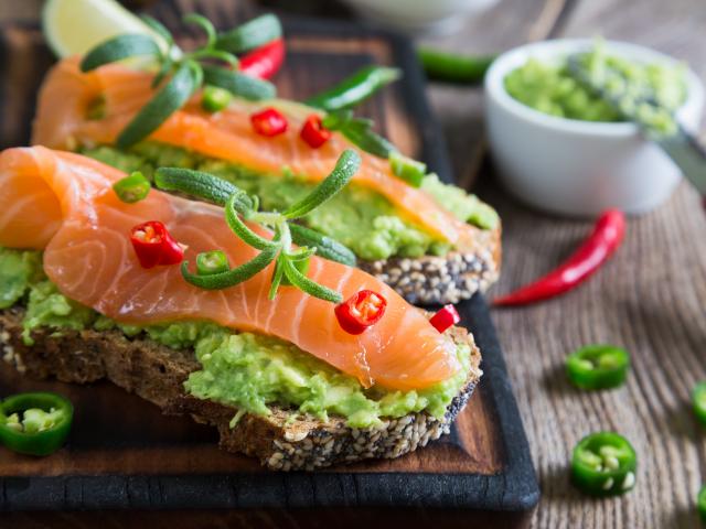 Wallpaper Sandwiches with cheese and red fish on a cutting board