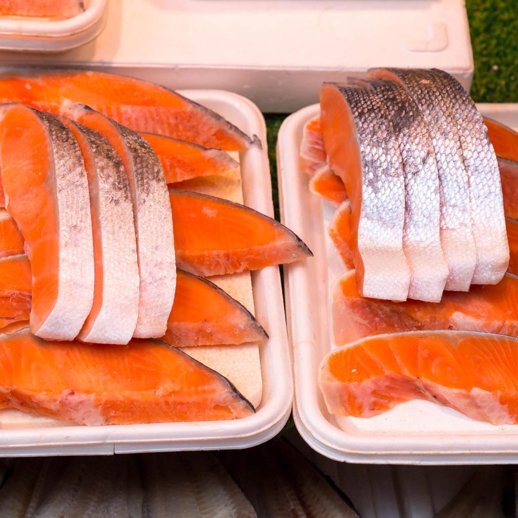 Wallpaper Fillet of red fish on a table with asparagus and lime