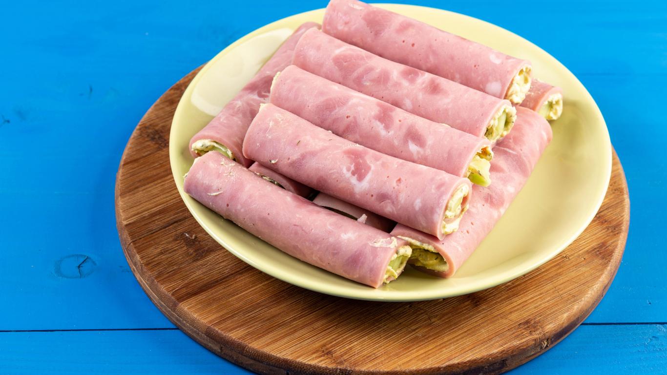 Wallpaper Ham rolls on a plate on a blue table