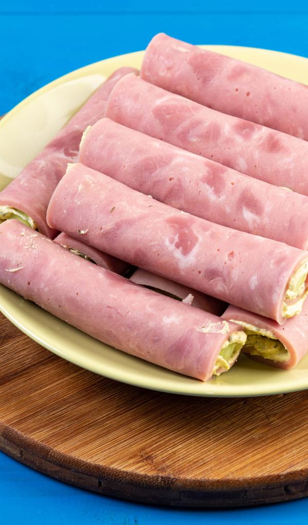 Wallpaper Ham rolls on a plate on a blue table