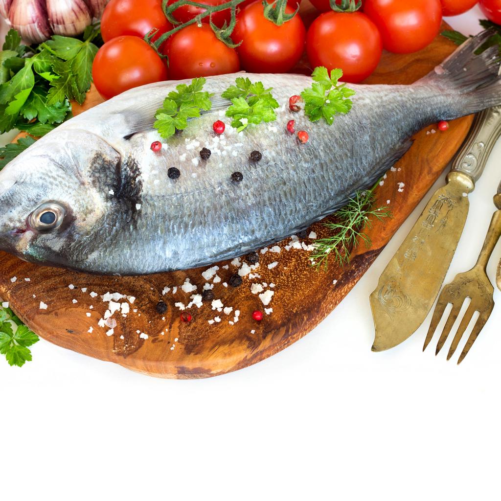 Wallpaper Raw fish on the table with butter and tomatoes