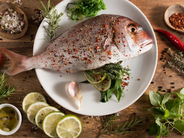 Wallpaper Fresh fish with spices, herbs and lime