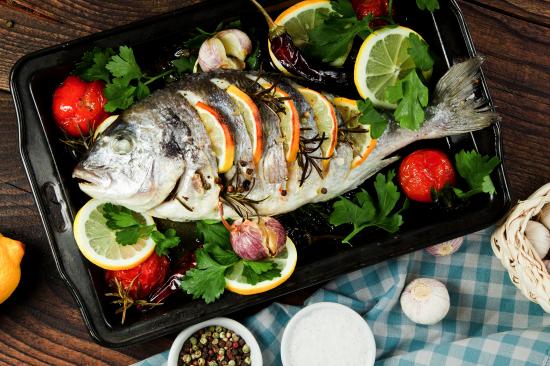 Wallpaper Baked crucian carp with tomatoes and lemon