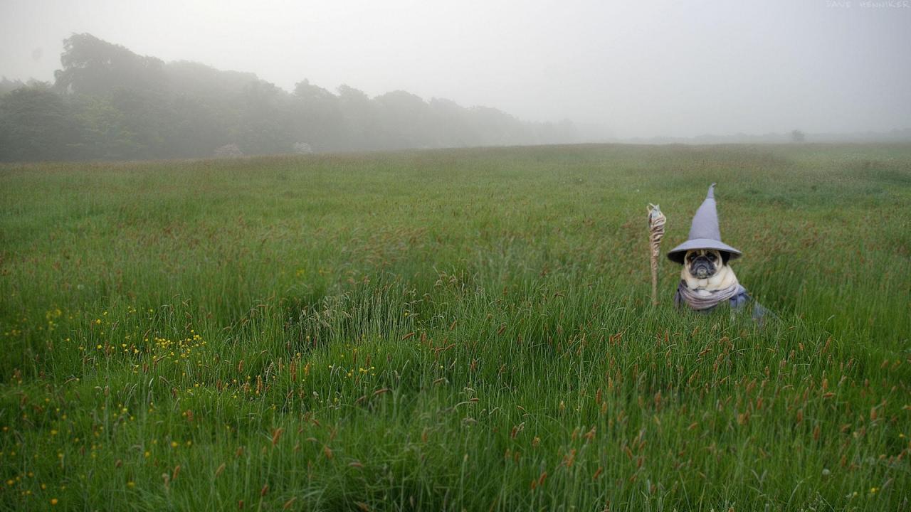 Wallpaper Pug in Gandalf costume in green grass