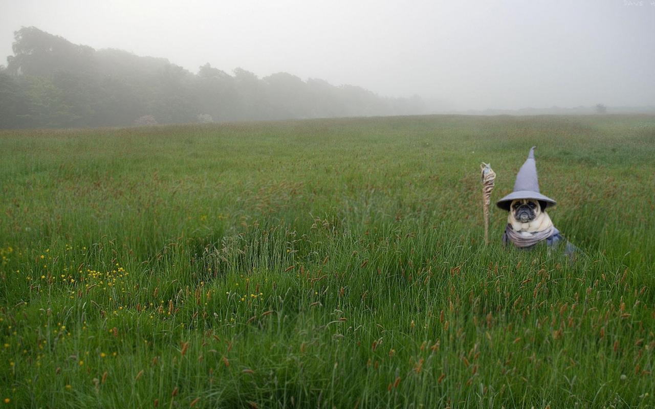 Wallpaper Pug in Gandalf costume in green grass