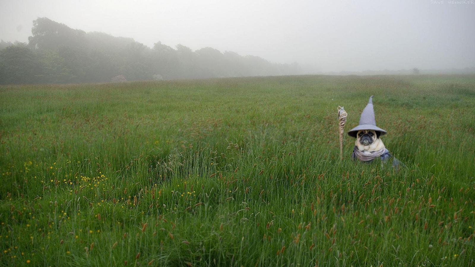 Wallpaper Pug in Gandalf costume in green grass
