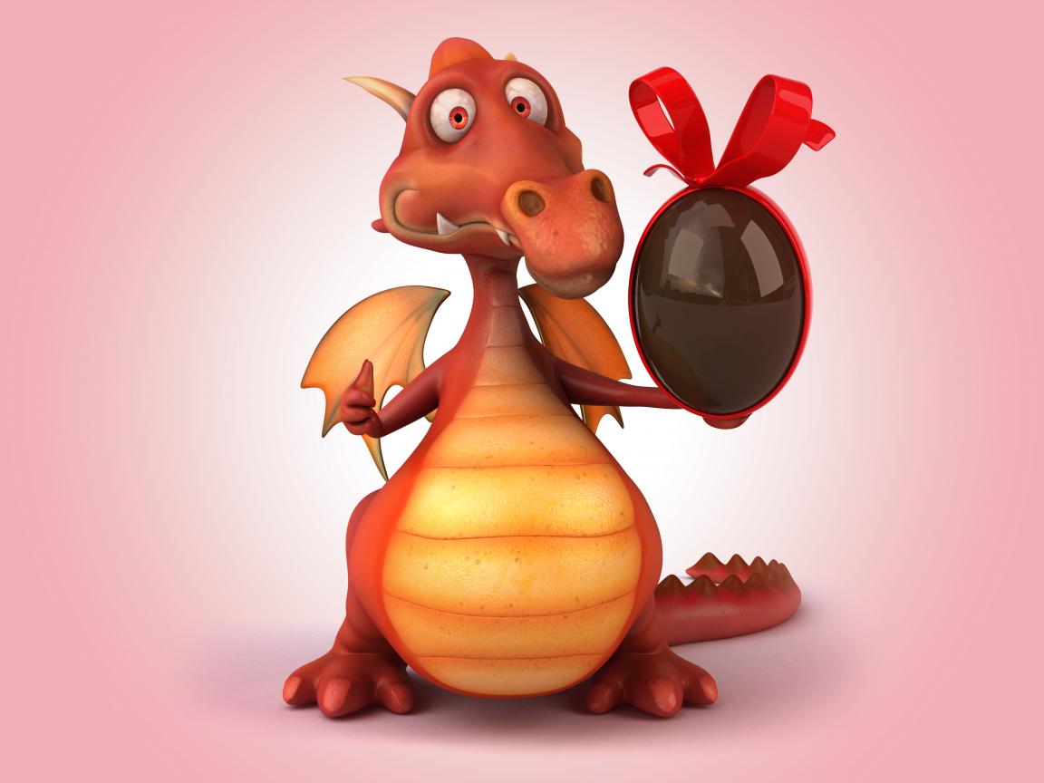 Wallpaper Red dragon with chocolate egg in his paw