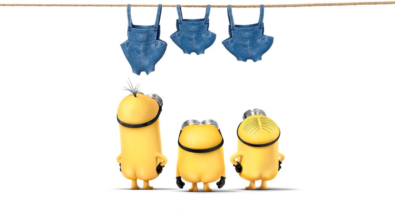 Wallpaper Minions dry overalls on a rope