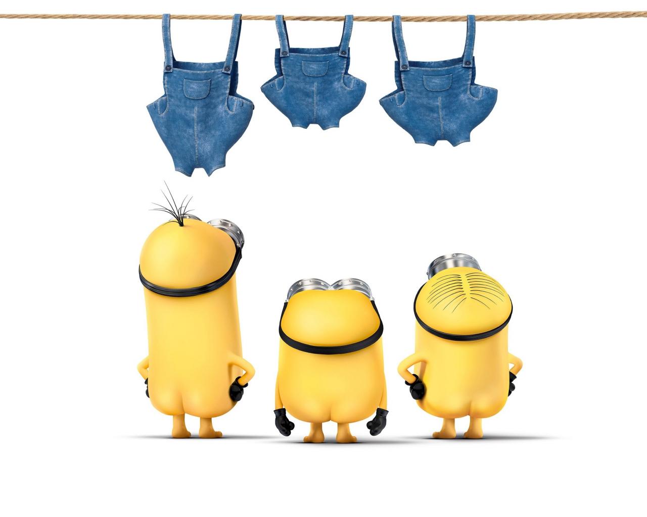 Wallpaper Minions dry overalls on a rope