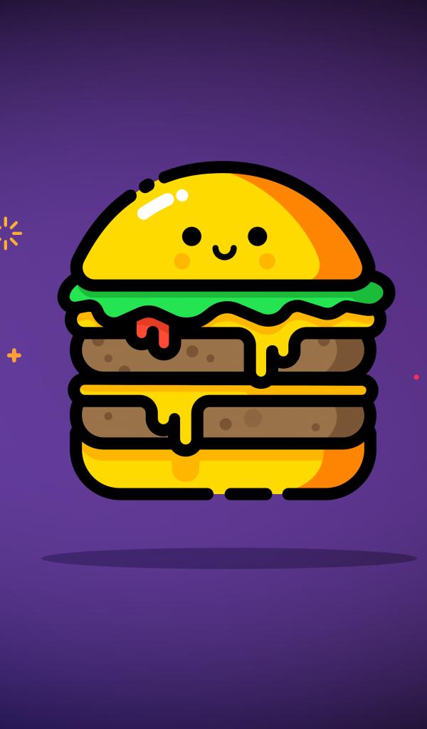 Wallpaper Painted cheerful hamburger on a purple background