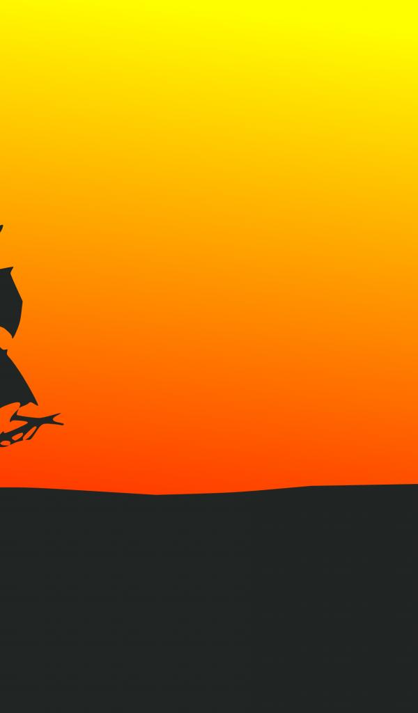 Wallpaper Black pirate ship on orange background