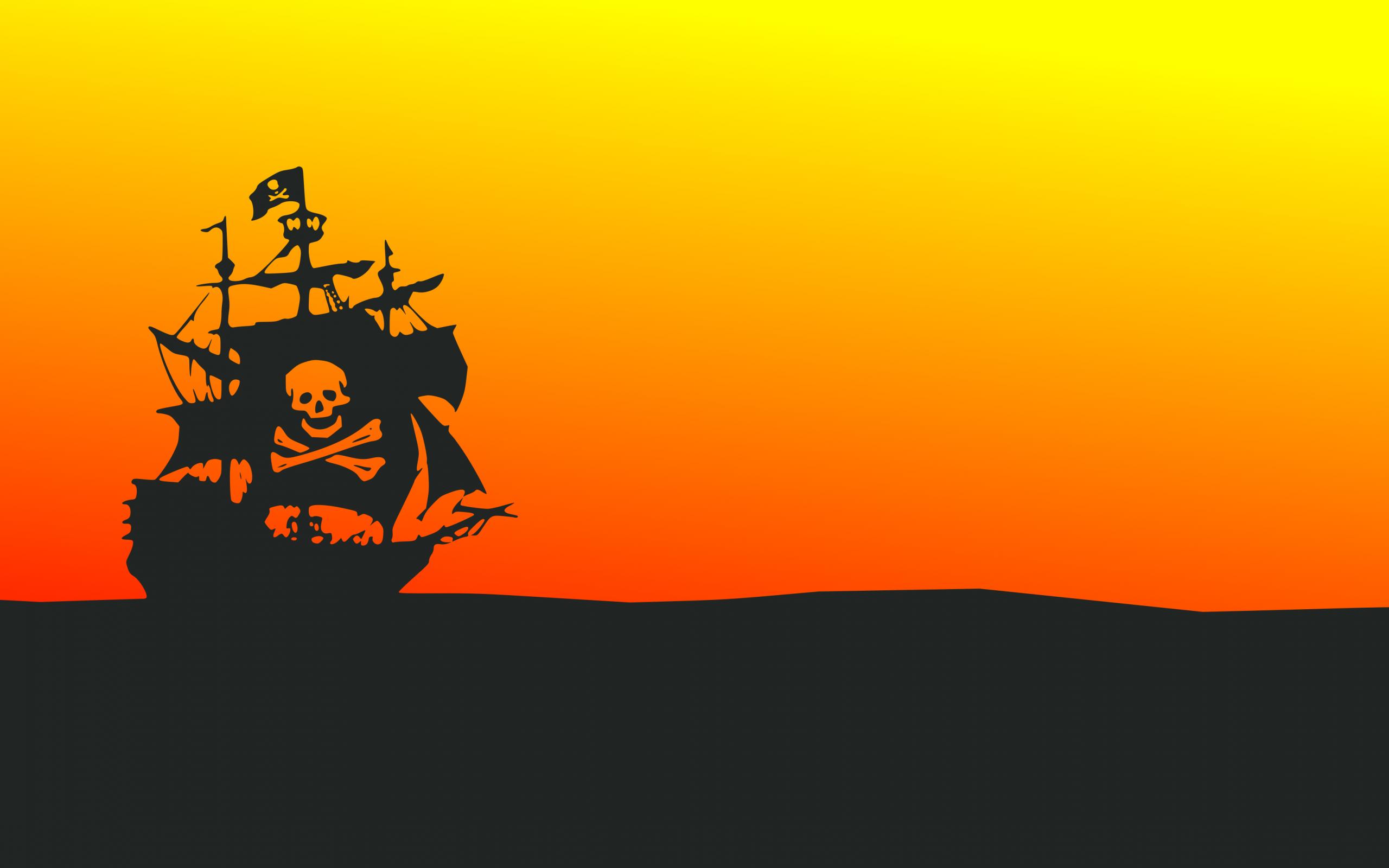 Wallpaper Black pirate ship on orange background