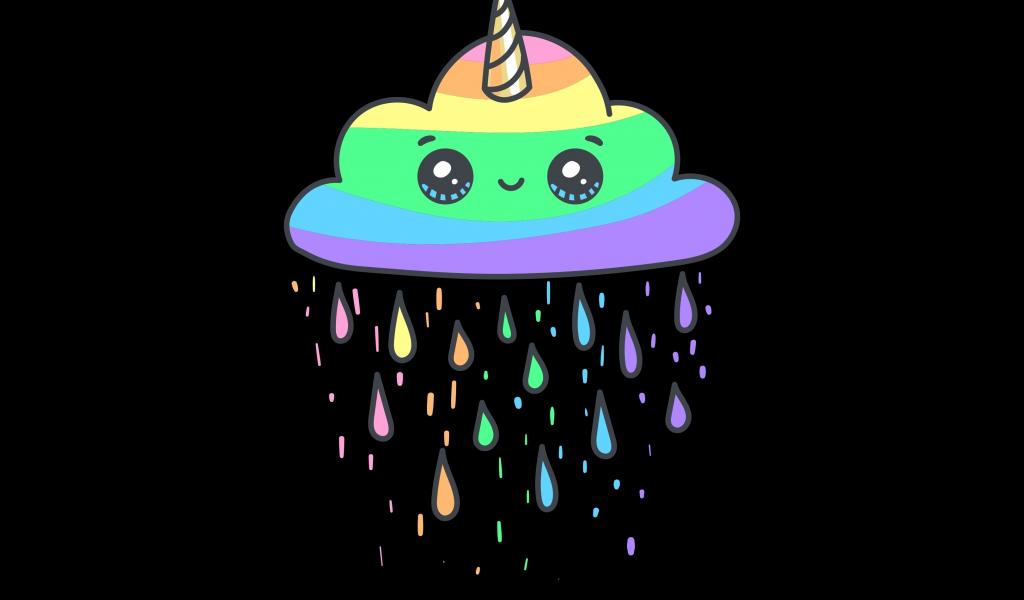 Wallpaper Multicolored cloud unicorn on a black background