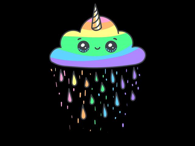 Wallpaper Multicolored cloud unicorn on a black background
