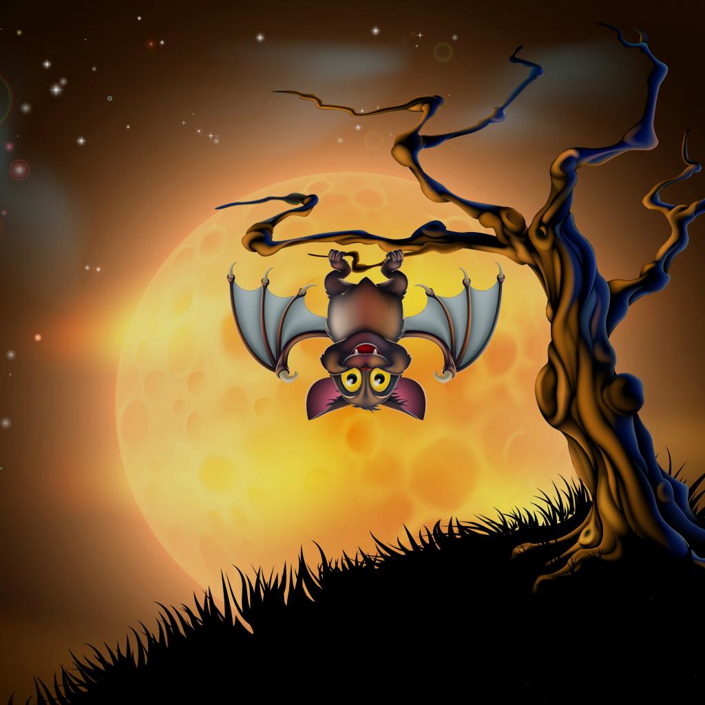 » Wallpaper Funny bat on a tree on the background of the moon