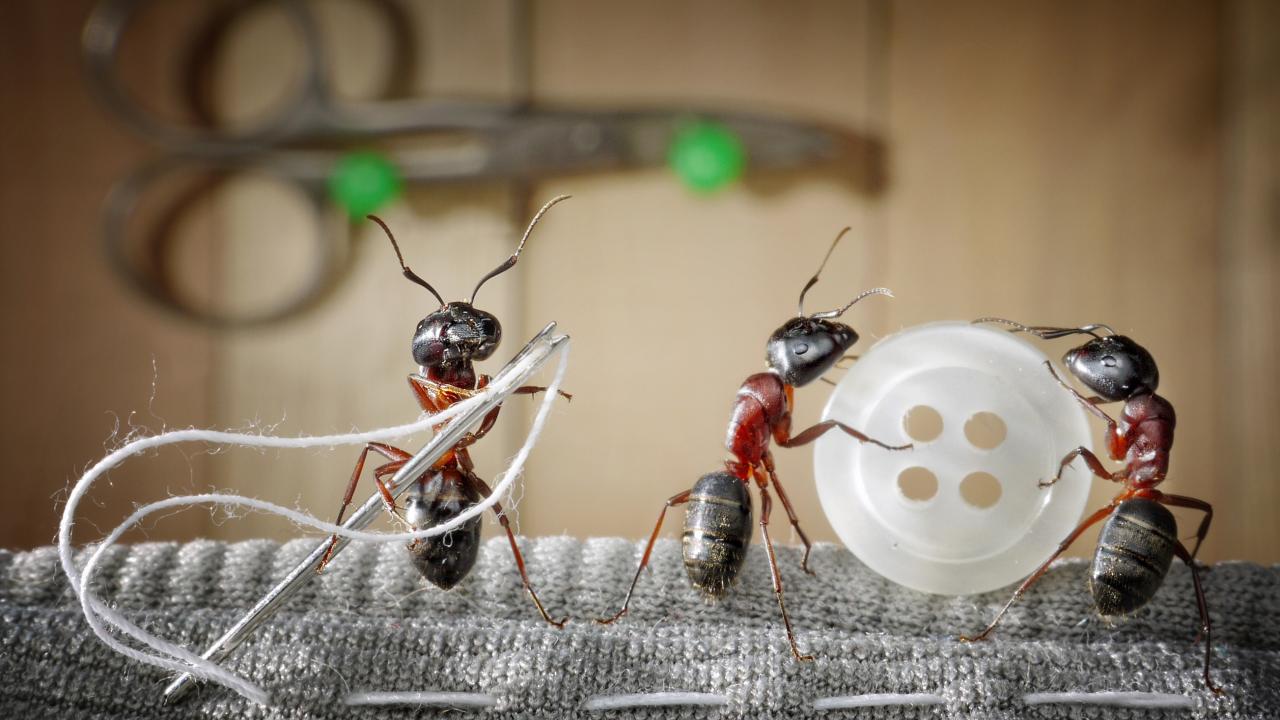 » Wallpaper Three ants sew a button